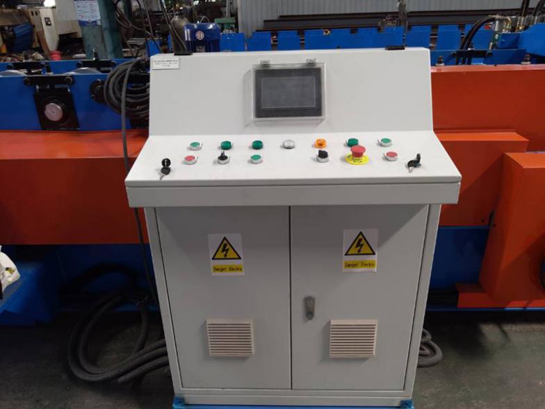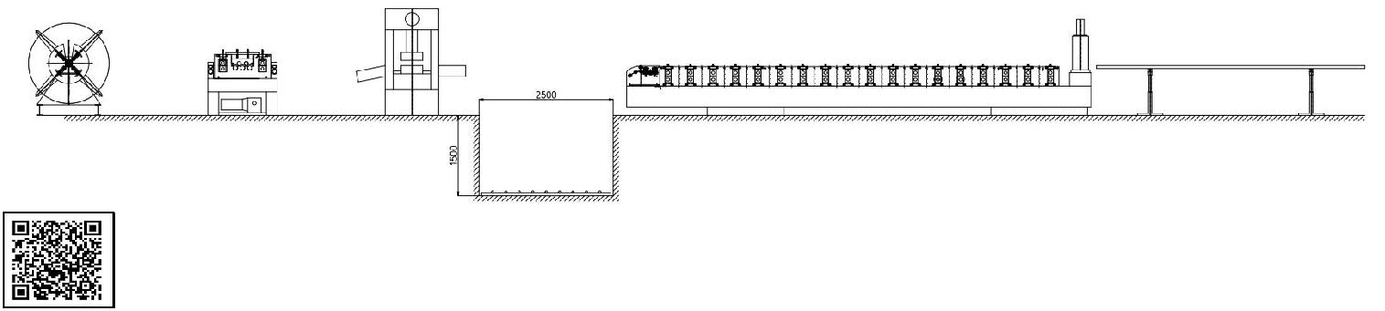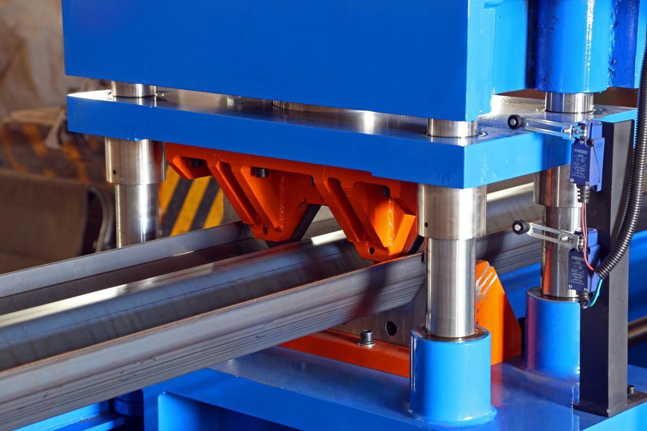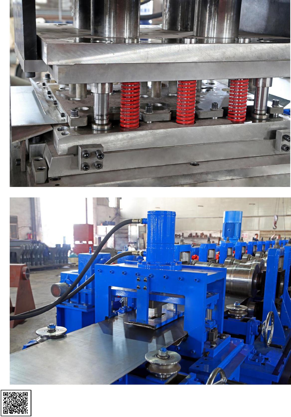 6 طن decoiler الهيدروليكية → جهاز التسوية → جهاز اللكم الهيدروليكي → جهاز التغذية → نظام الماكينة الرئيسية → قطع هيدروليكية بعد قطع → خروج الرف